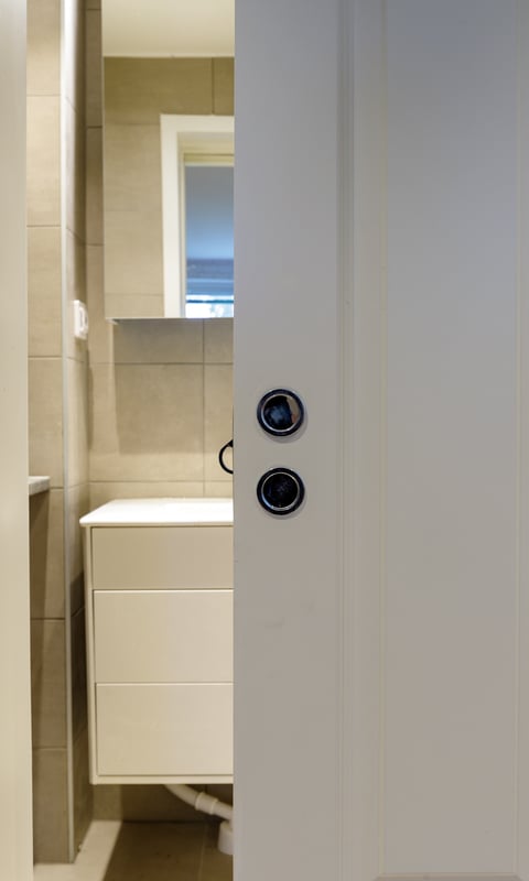 Badrum Kaklat badrum med klinkergolv Infälld belysning Förberett för tvättmaskin och torktumlare